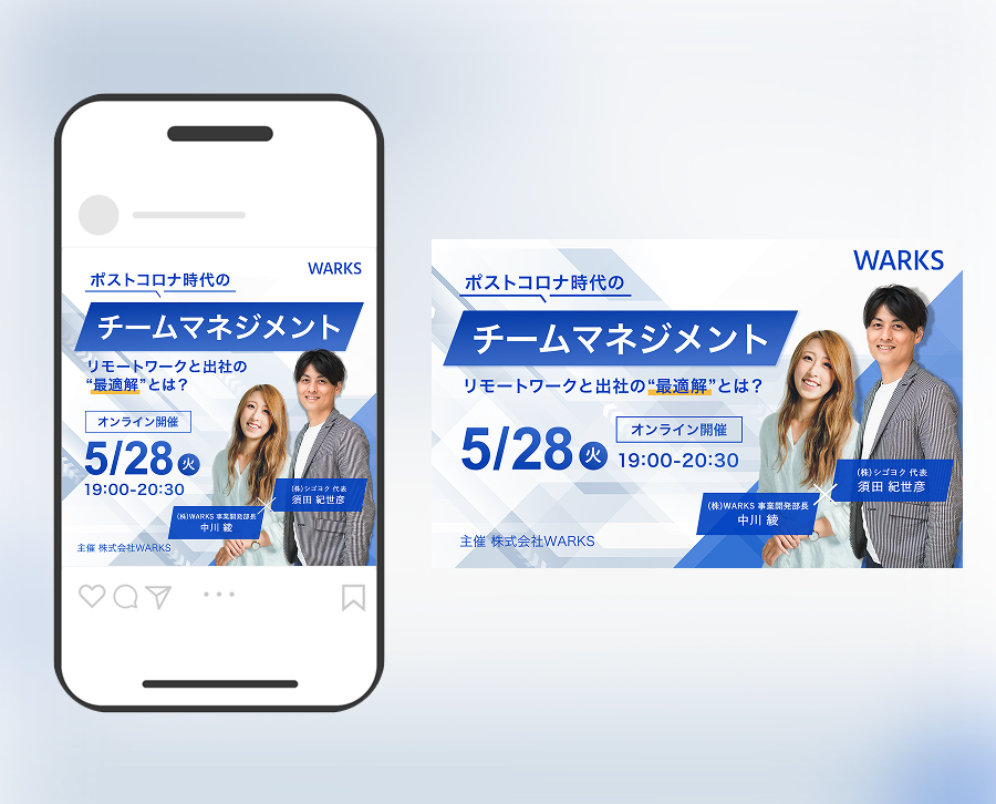 登壇者が二名いたため、優劣をつけないよう写真サイズは同じにして並べました。その他、役職・氏名も同じデザインで纏めました。